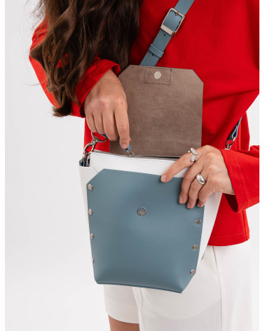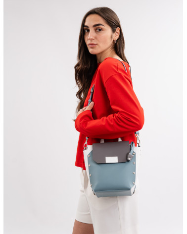 Корпус виготовлено зі шкіри українського виробництва. Основне відділення закривається на блискавку, кришку-клапан та магніт. Всередині рюкзака одне відділення та кишеня з фетру. Зовні рюкзак доповнено короткою ручкою, яка дозволяє носити його у руці. Також у комплекті є три довгі ручки. За допомогою широкої ручки зі щільної стрічки ви можете легко трансформувати рюкзак у сумку (для цього використовуються кріплення на бокових стінках рюкзака).Крім того, використовуючи дві інших ручки зі шкіри та кріплення на задній стінці рюкзака, ви можете носити його як рюкзак. Ці функції стають досить доречними у людних місцях.
