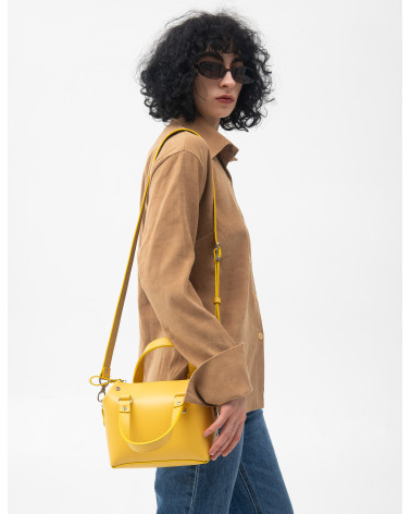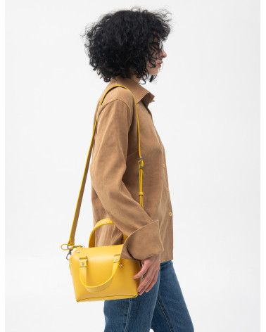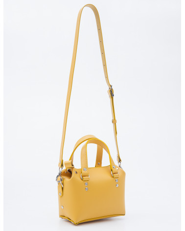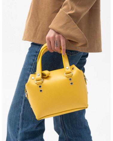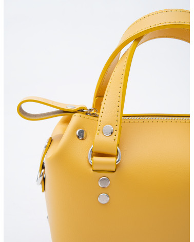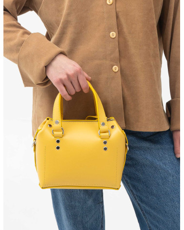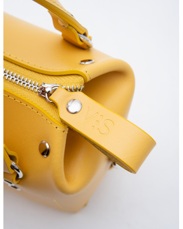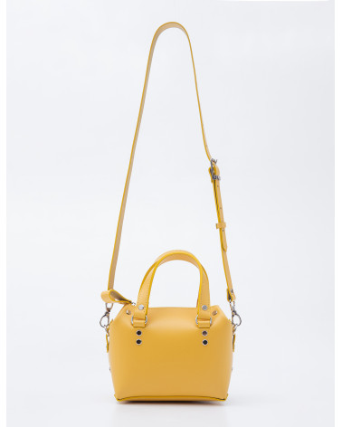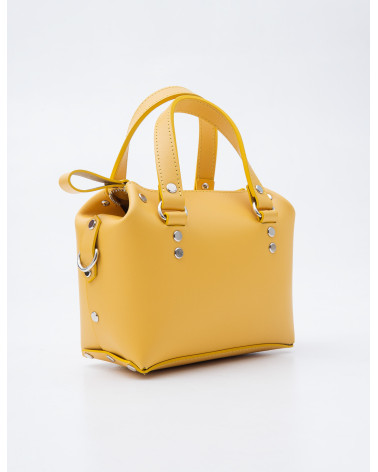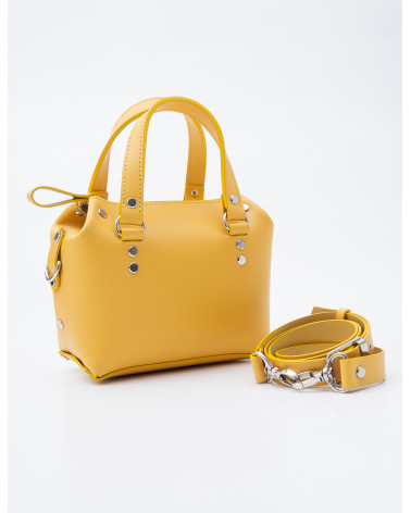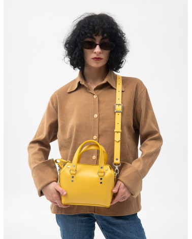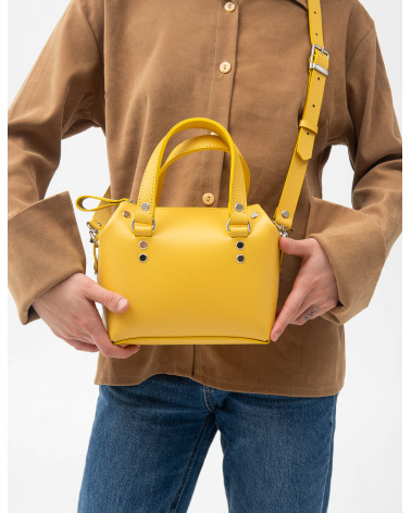 Корпус виготовлено з натуральної шкіри українського виробництва. Всередині одне відділення та кишенька з фетру. За допомогою коротких ручок ви можете носити сумочку у руці, що додасть вашому образу особливого шарму. У комплекті є зйомна довга ручка. За бажанням вона може бути виготовлена повністю зі шкіри чи у поєднанні з ланцюжком.