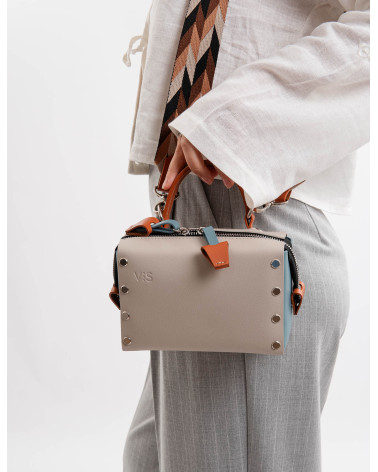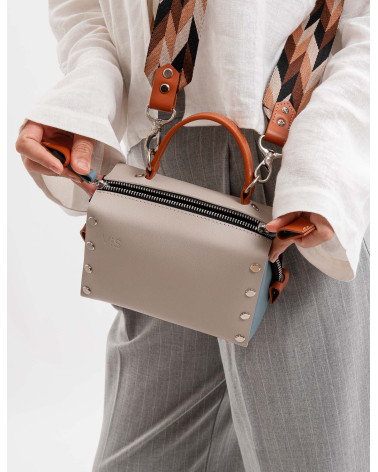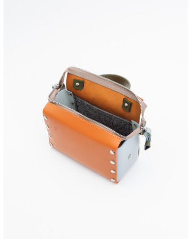 Корпус виготовлено з натуральної шкіри українського виробництва. Основне відділення закривається на блискавку. Всередині сумочки одне відділення, кишенька з фетру для ключів/телефону/дрібничок. Антарес:блискавку доповнено боковими стопорами, що дозволяють додатково захистити вміст від вологи чи випадіння.