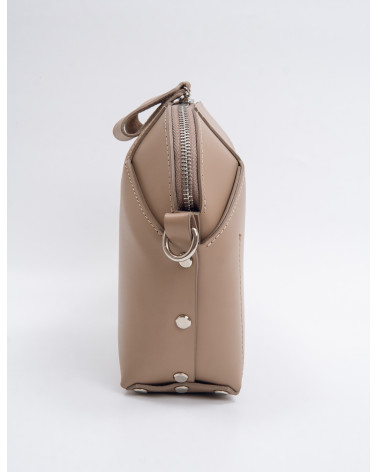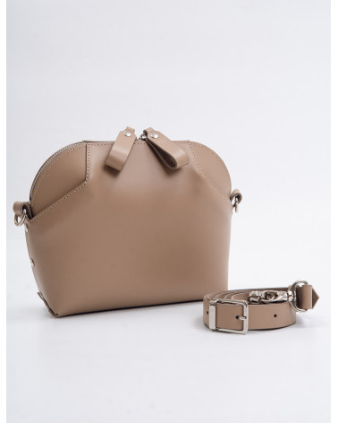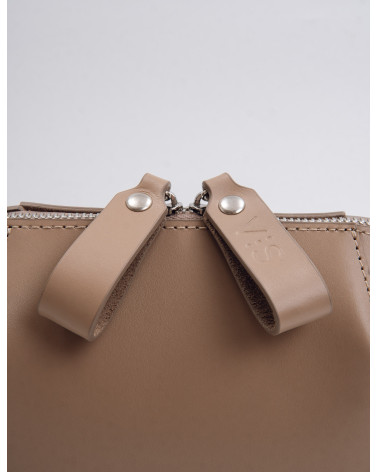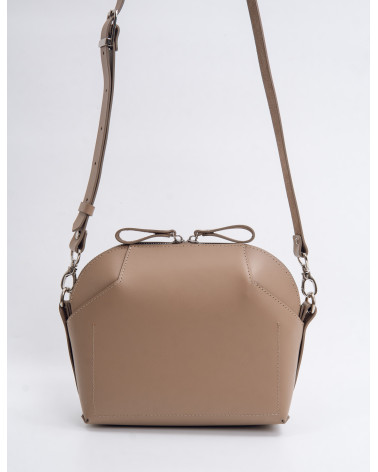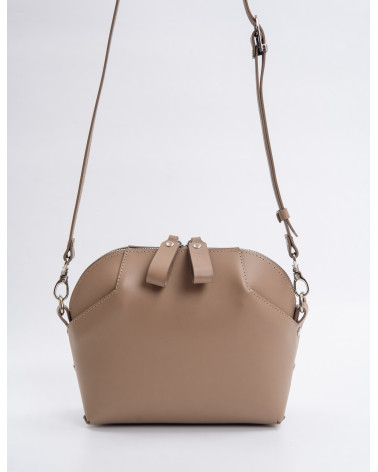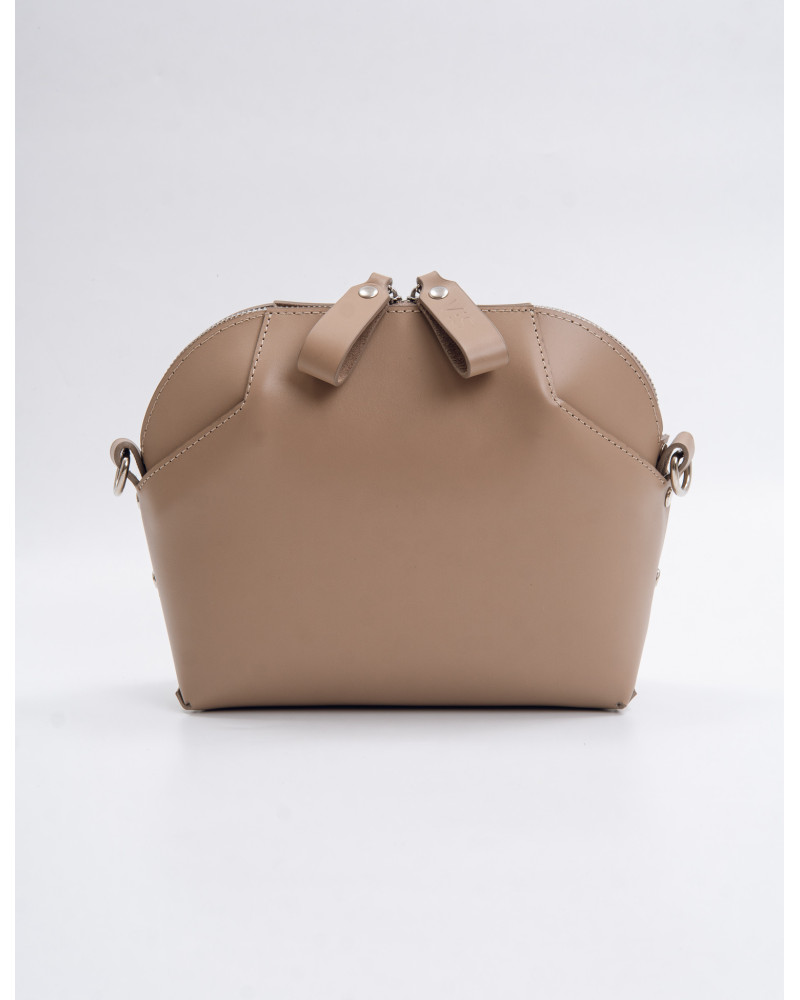 Корпус виготовлено з натуральної шкіри українського виробництва. Всередині сумочки одне відділення та кишенька з фетру. Основне відділення закривається на блискавку. У комплекті є зйомна довга ручка.