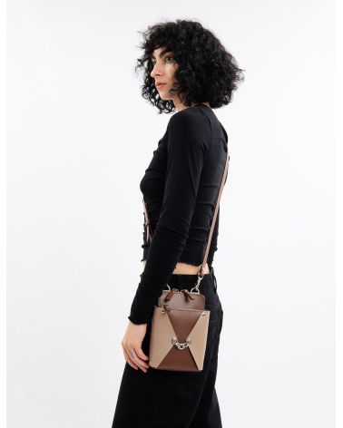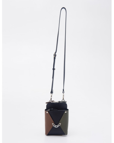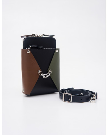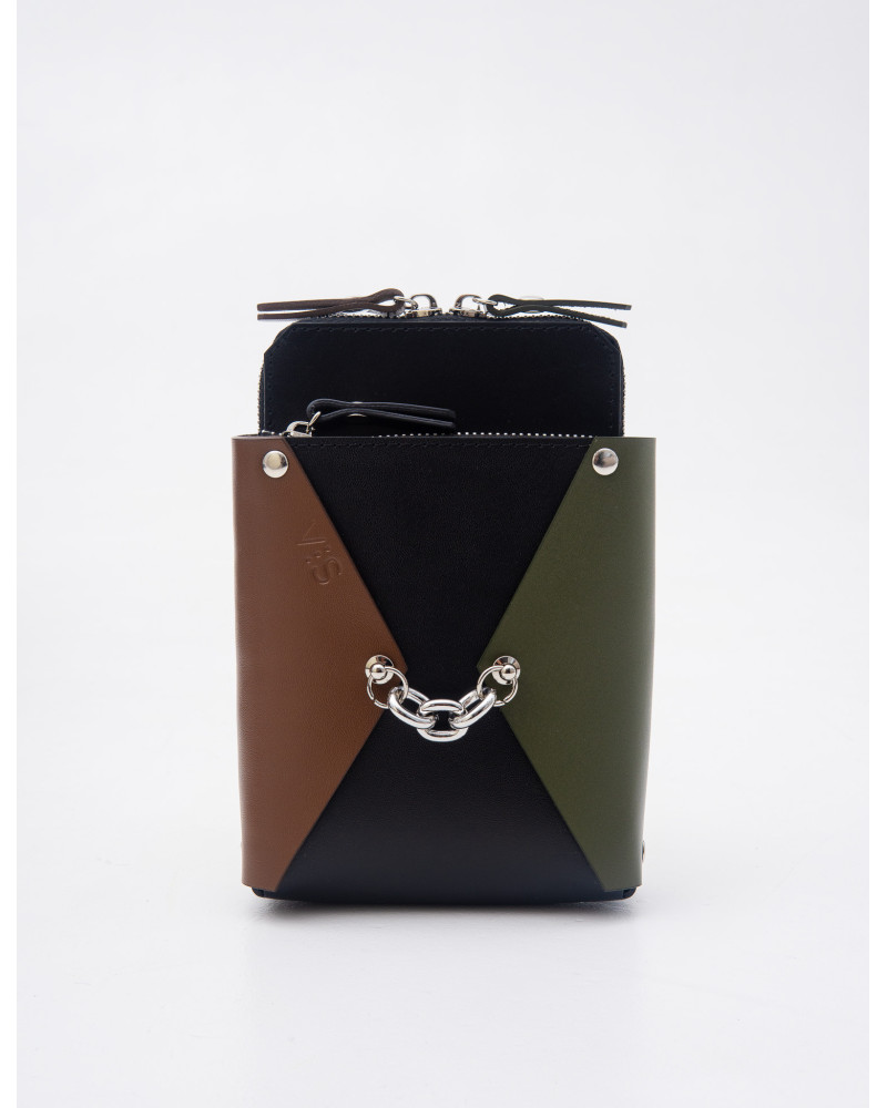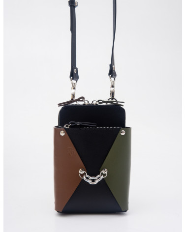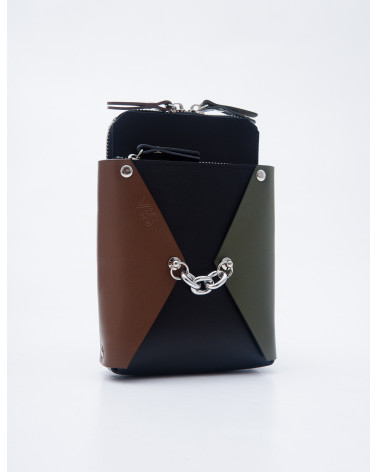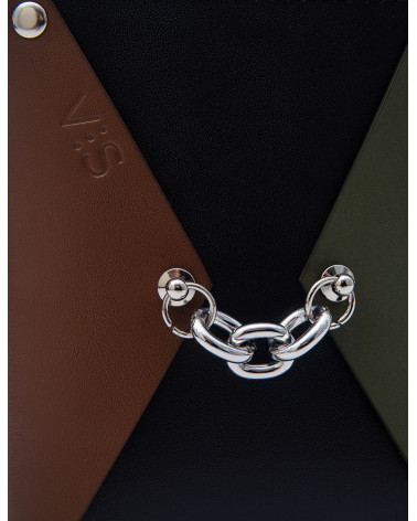 На фото Талія:сумка у поєднанні чорного, оливкового та коричневого.
