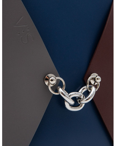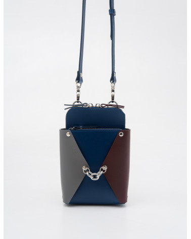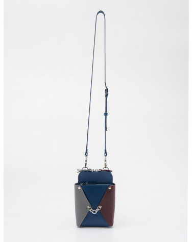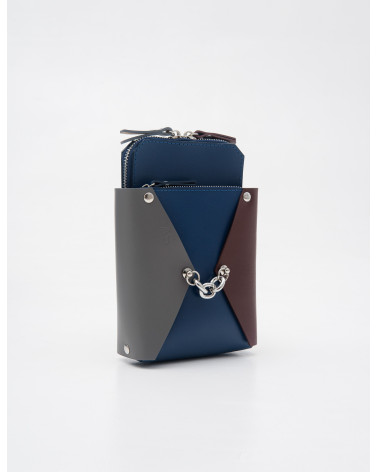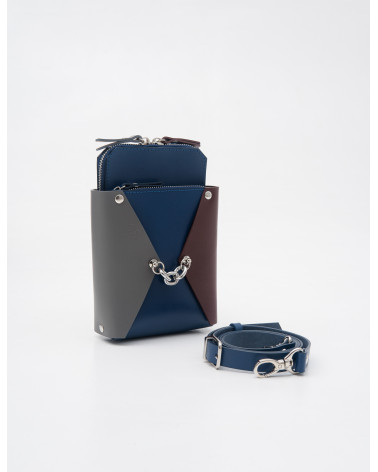 На фото Талія:сумка у поєднанні сірого, синього та коричневого.