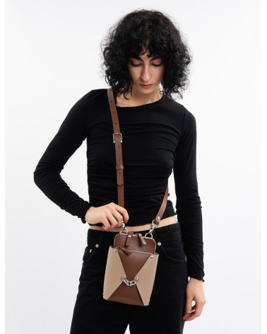 Корпус виготовлено зі шкіри українського виробництва. Основне відділення закривається на блискавку. Всередині сумочки одне відділення. Ззовні модель доповнено зручною кишенею на блискавці. Модель Талія:сумка створена, як варіація сумки для телефону. Тому, залежно від розміру вашого телефону, його можна зручно розміщувати у зовнішній кишені чи в основному відділенні сумки. У комплекті є довга зйомна ручка.