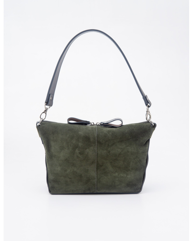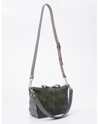 На фото Софт:бег у поєднанні сірої шкіри та оливкової замші.
