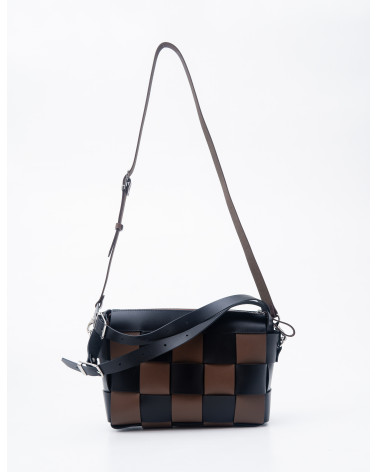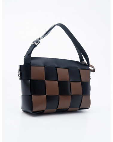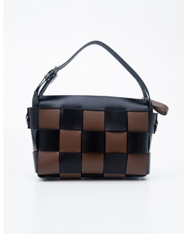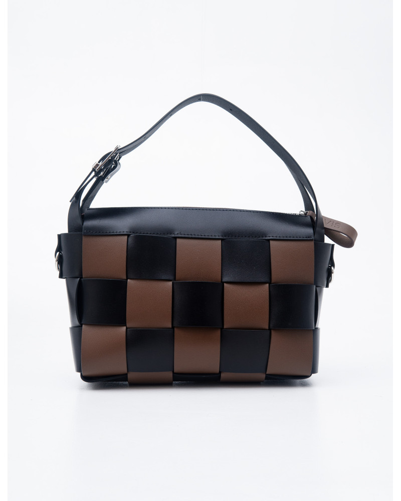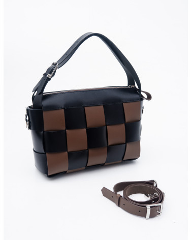 На фото Елара:сумка у поєднанні чорного та коричневого.
