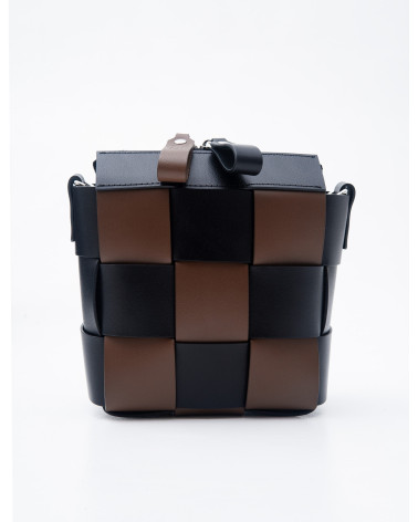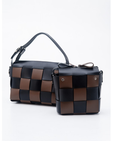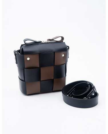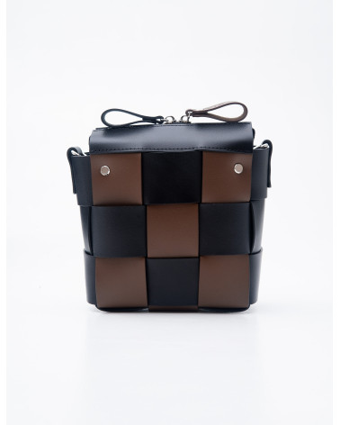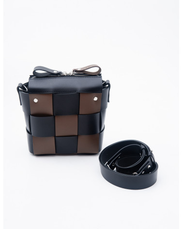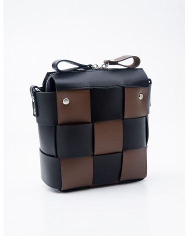 На фото Елара:сумка у поєднанні чорного та коричневого.