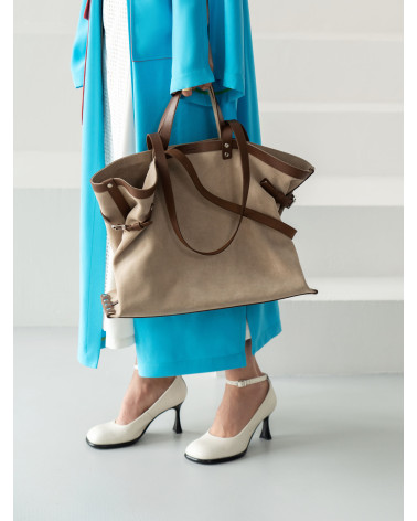 Вриваємося в світ замші. І це модель вже має своїх поціновувачок, бо відзняти її з першої пошитої не вдалося. Придбали. Робили нову парію. І це щось неймовірне, містке, влізе все і ще гаманець у комплекті.