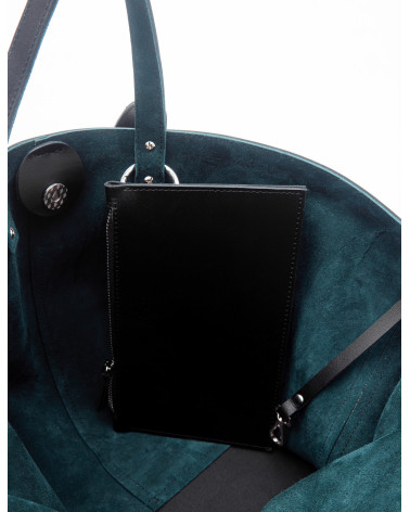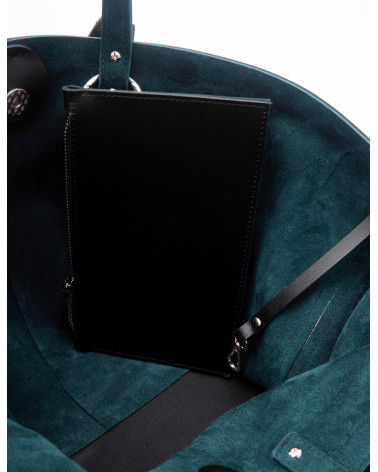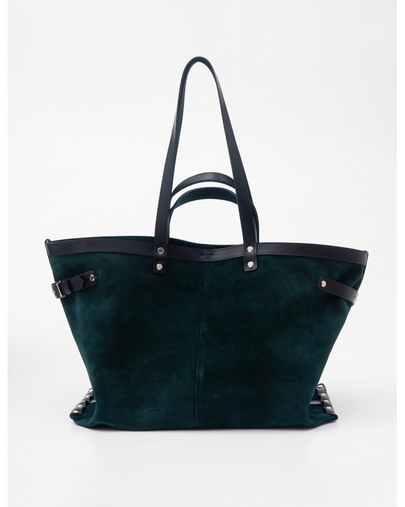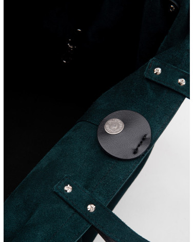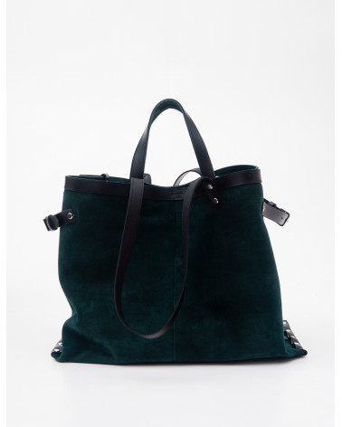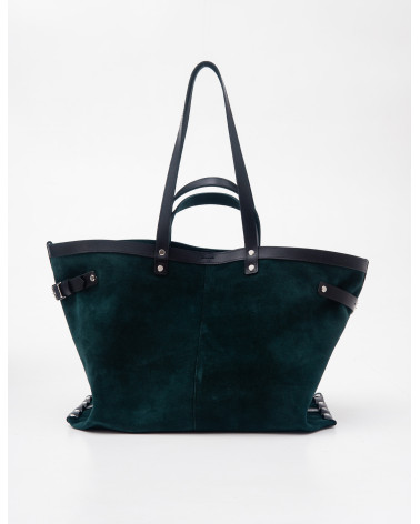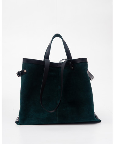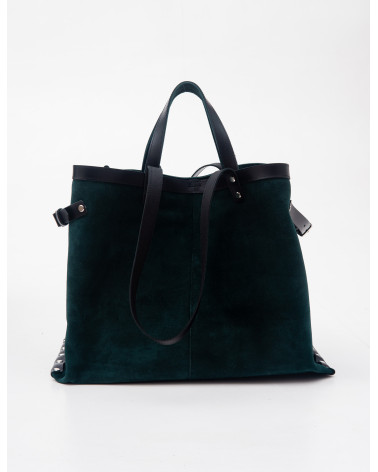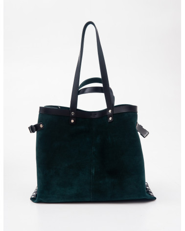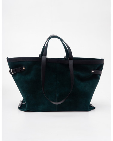 На фото шоппер у поєднанні зеленої замші та чорної шкіри.