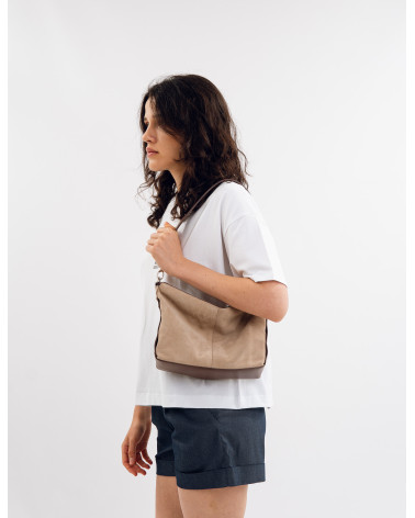 На фото Софт:бег у поєднанні коричневої шкіри та коричневої замші.