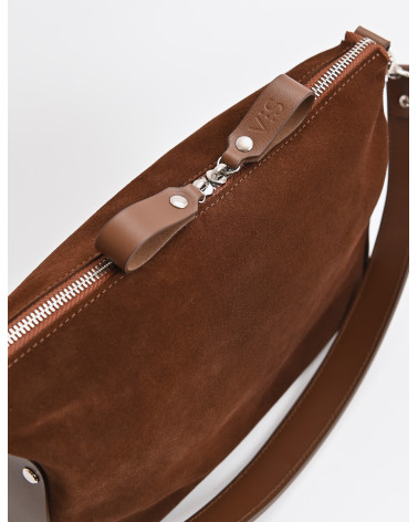 Корпус виготовлено зі шкіри українського виробництва. Для цієї моделі ми використовуємо шкіру у двох товщинах. Більш щільну, для основних деталей та ручок. Та мʼякішу для корпусу сумочки. І тому, маємо надзвичайно велику палітру кольорів для поєднання у цій моделі.